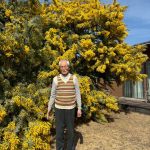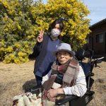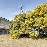 星のまちの庭のミモザも満開になりました。利用者さんたちも毎日記念写真を撮っています。